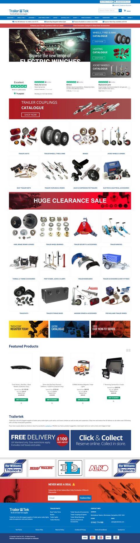 TrailerTek is a major UK supplier of trailer parts, trailer kits & accessories wheels & tyres, trailer lighting, brakes, axles, racks, roof storage boxes & towbars in Winchester, Hampshire, Englandtrailer hitch